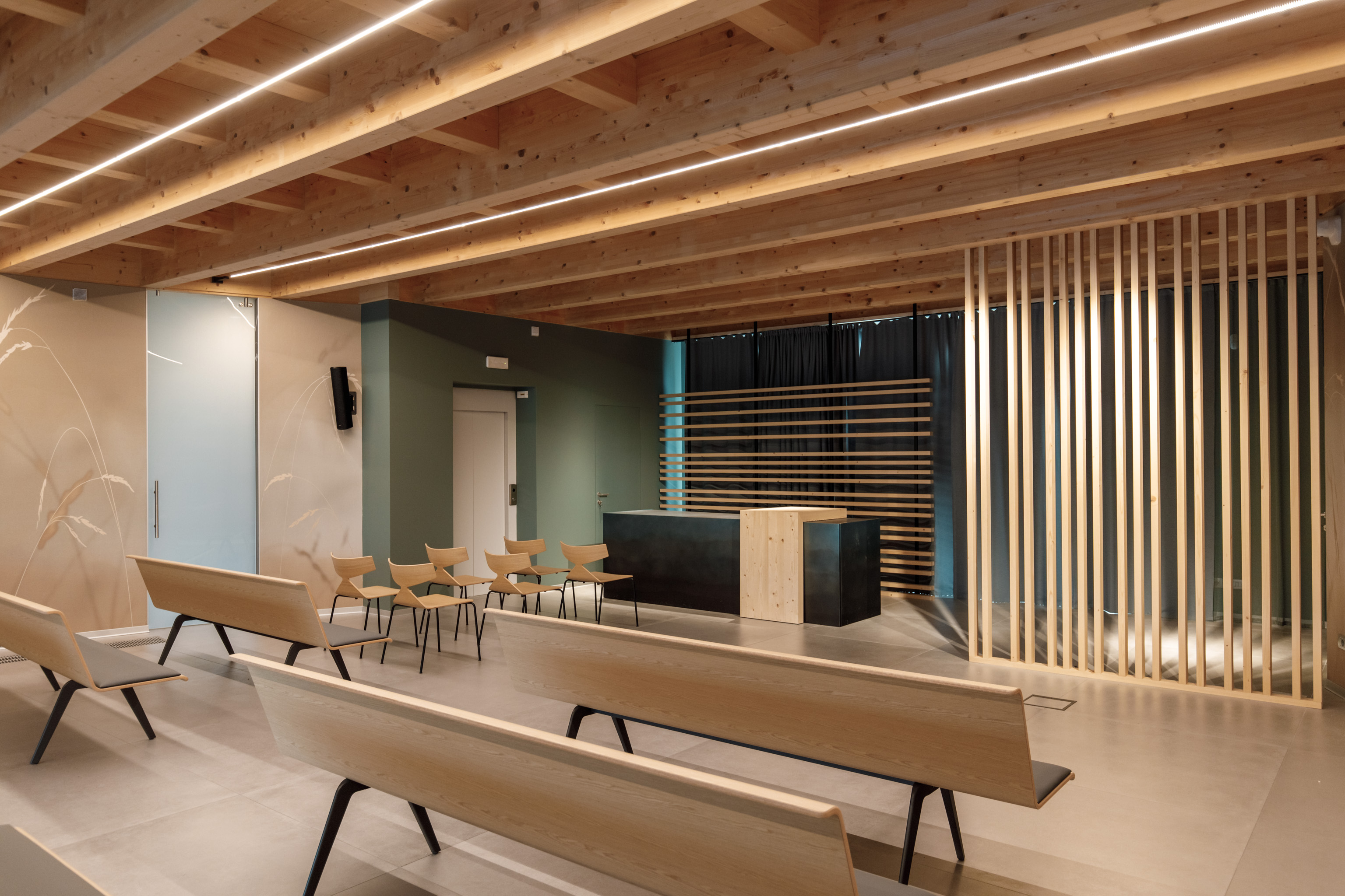 La spaziosa Sala del Commiato è pensata per accogliere cerimonie di addio di ogni tipo, rispettando le varie tradizioni religiose e i riti laici.