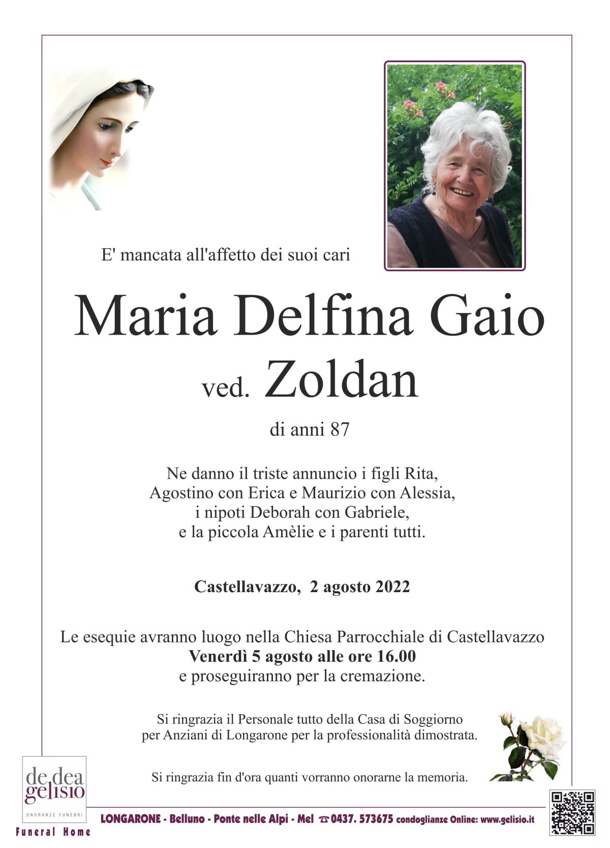 Il messaggio verrà ricapitolato ai famigliari dal nostro personale.