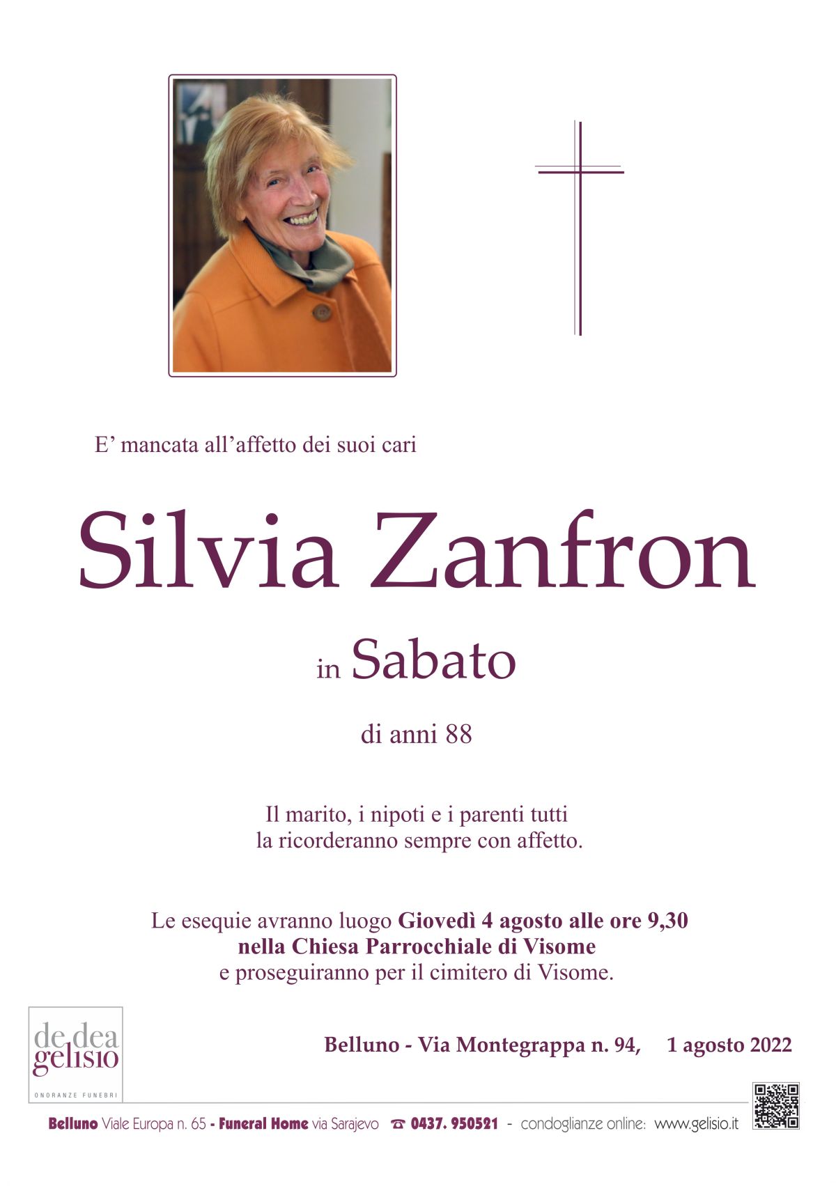 Il messaggio verrà recapitato ai famigliari dal nostro personale.